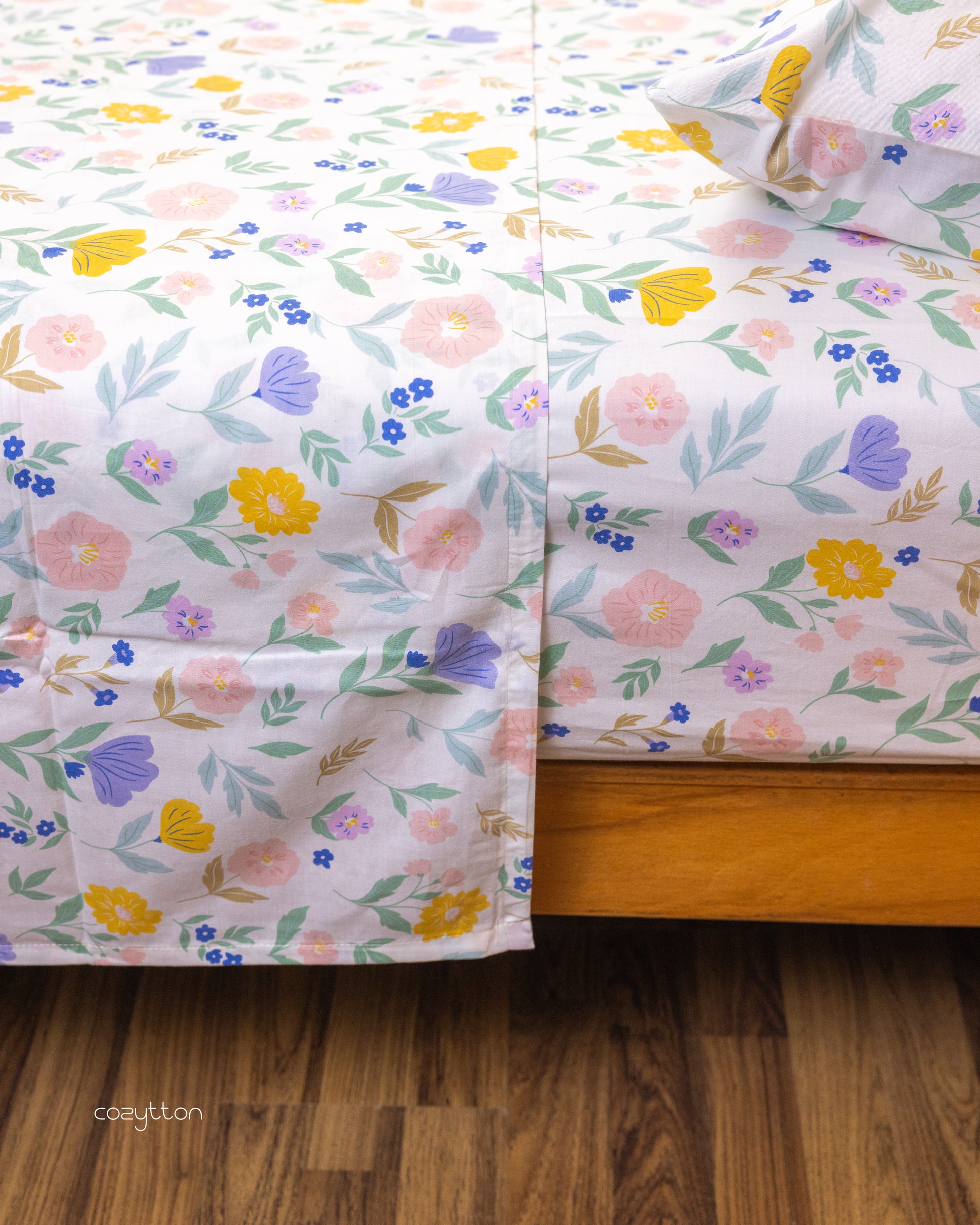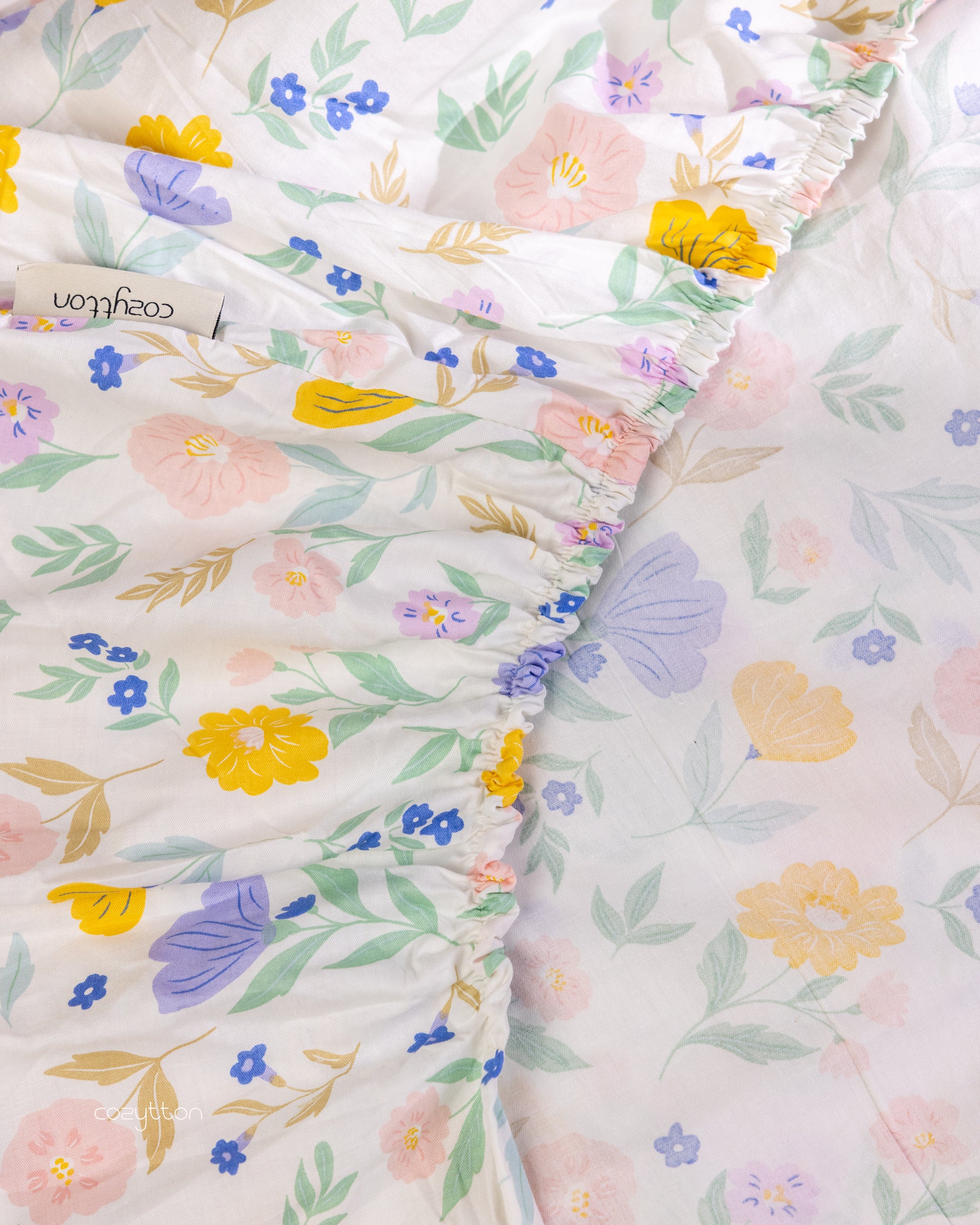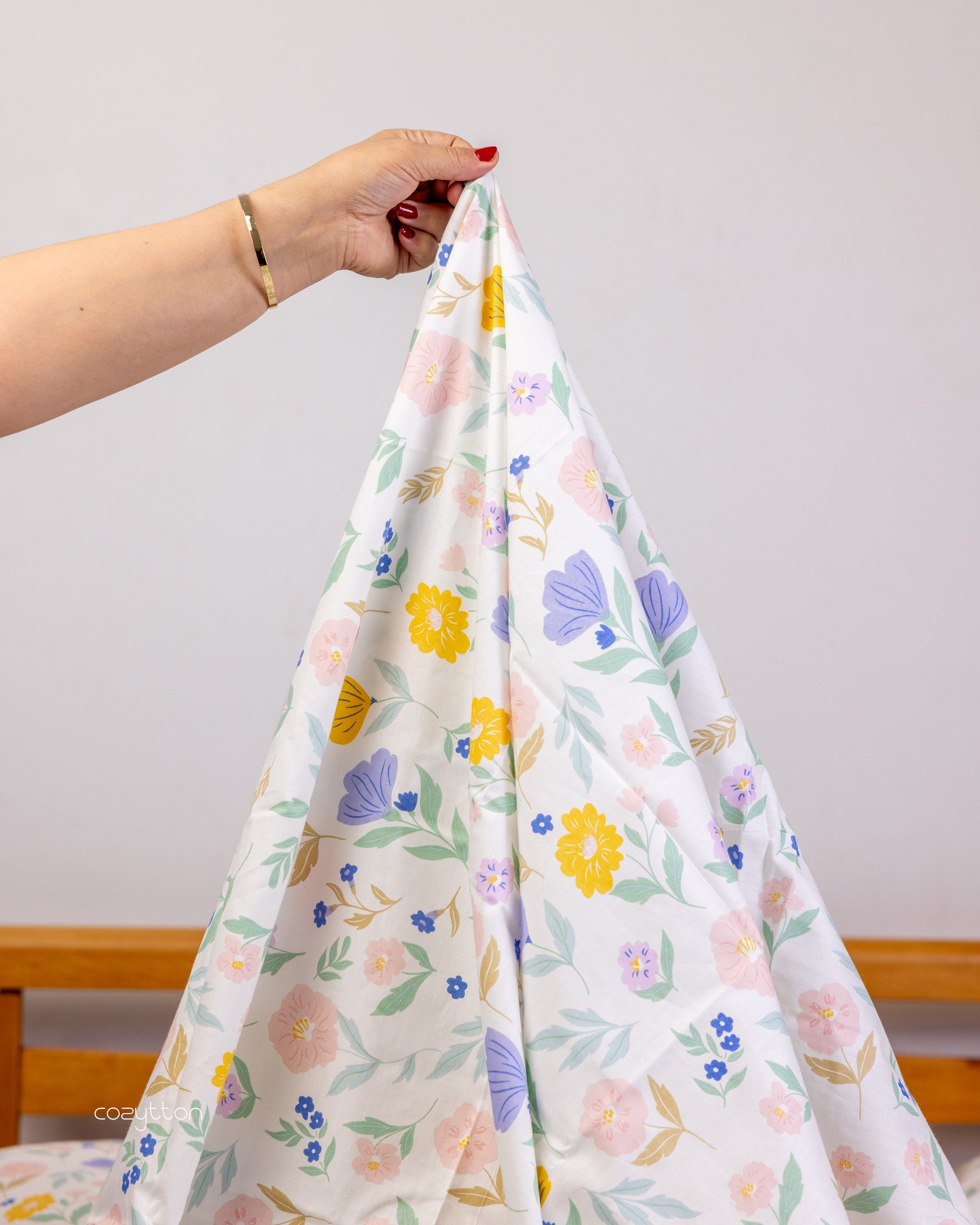 A beautiful floral design that brings freshness and charm to your bedroom. Made from 100% cotton sateen, offering a soft, smooth feel with a gentle sheen for luxurious comfort.
