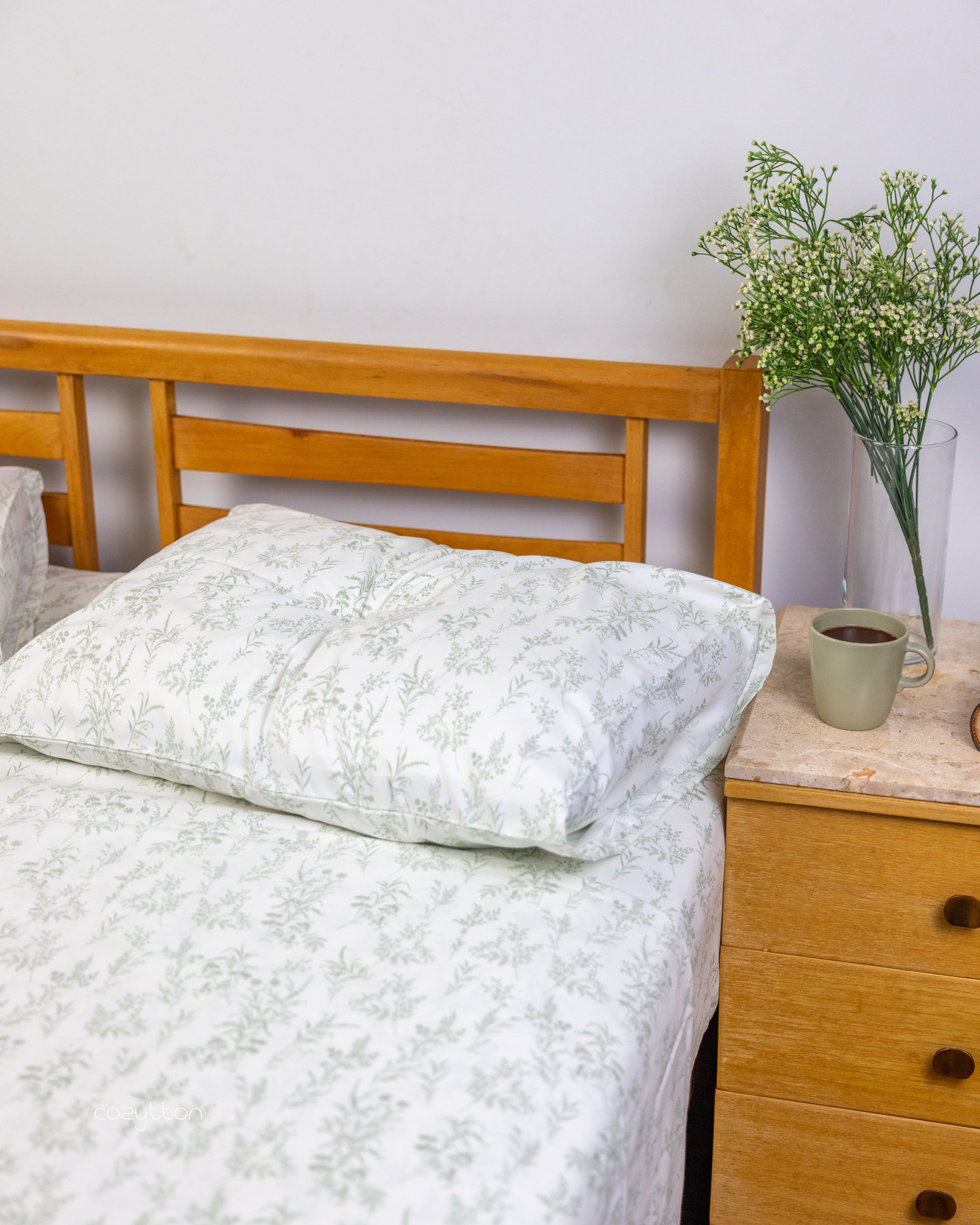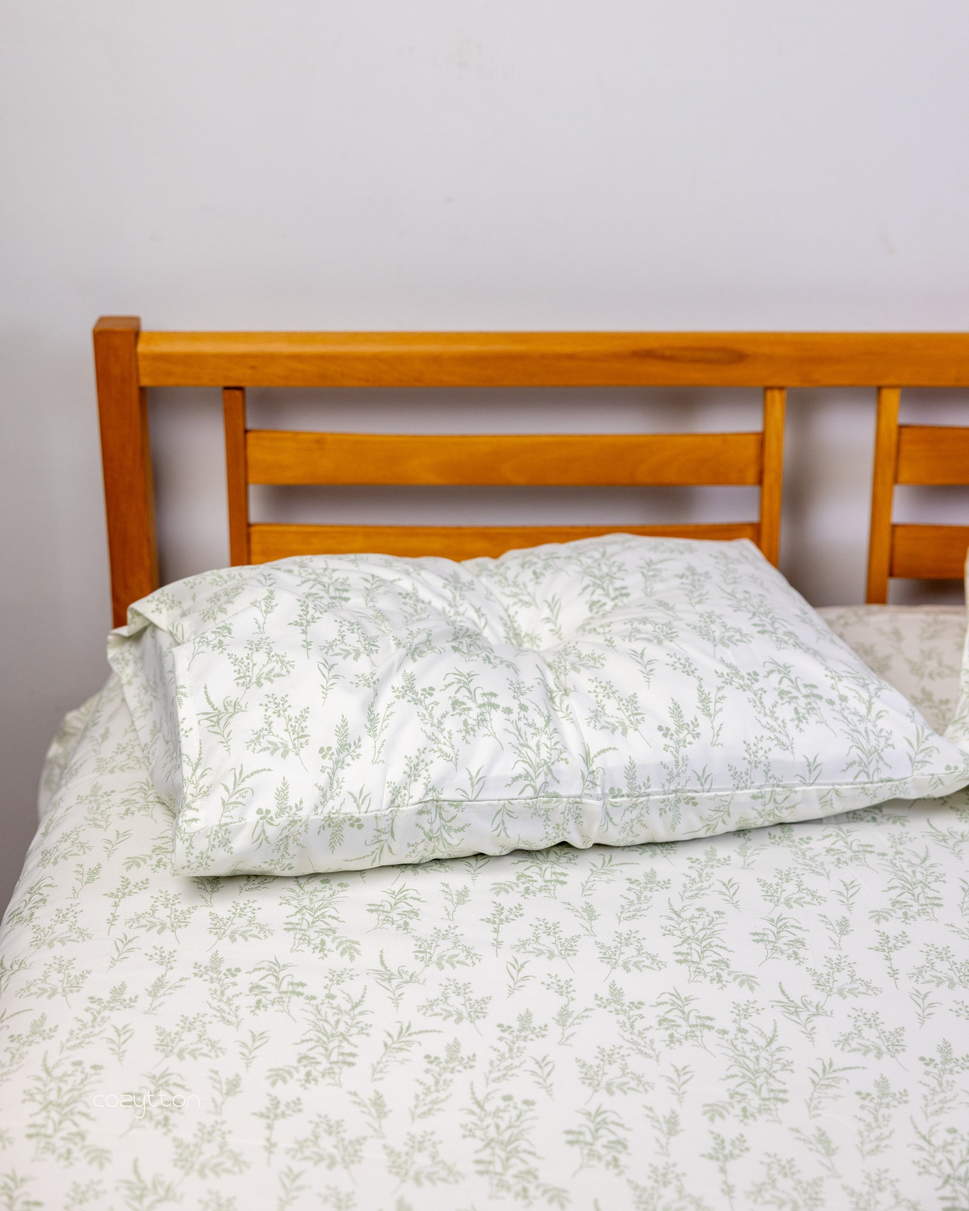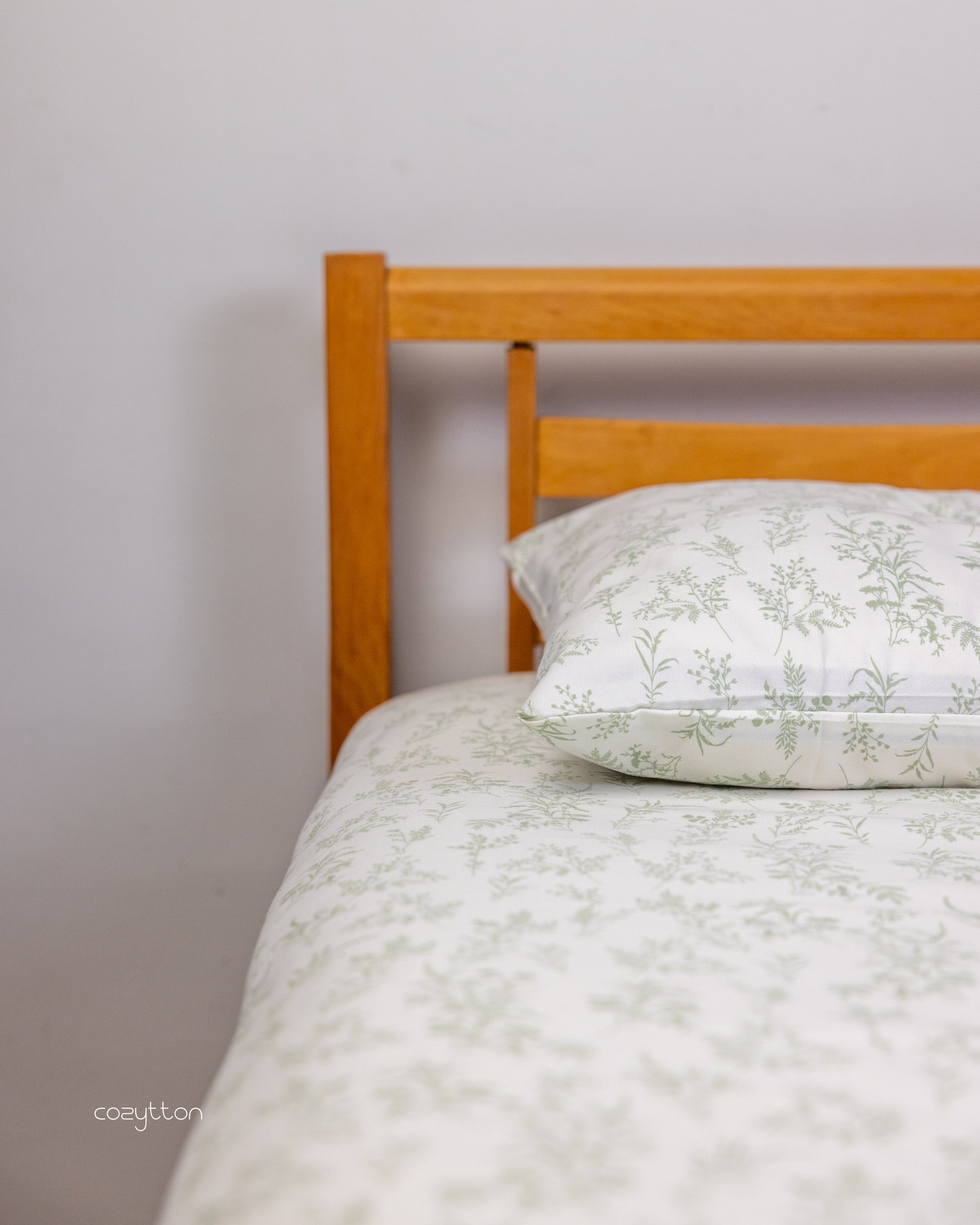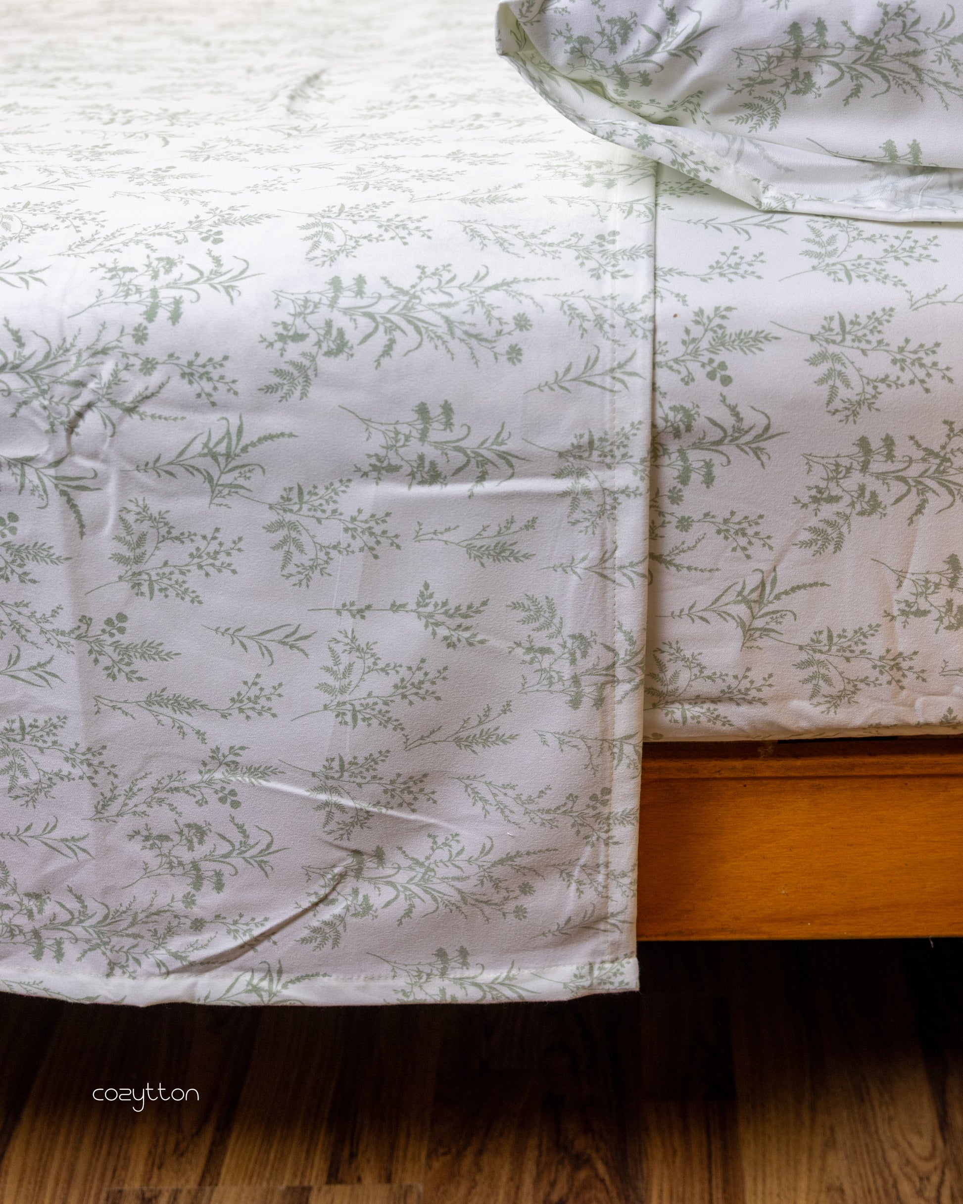 Natural green shade that feels calm and grounding. Made from 100% cotton percale with a smooth finish.