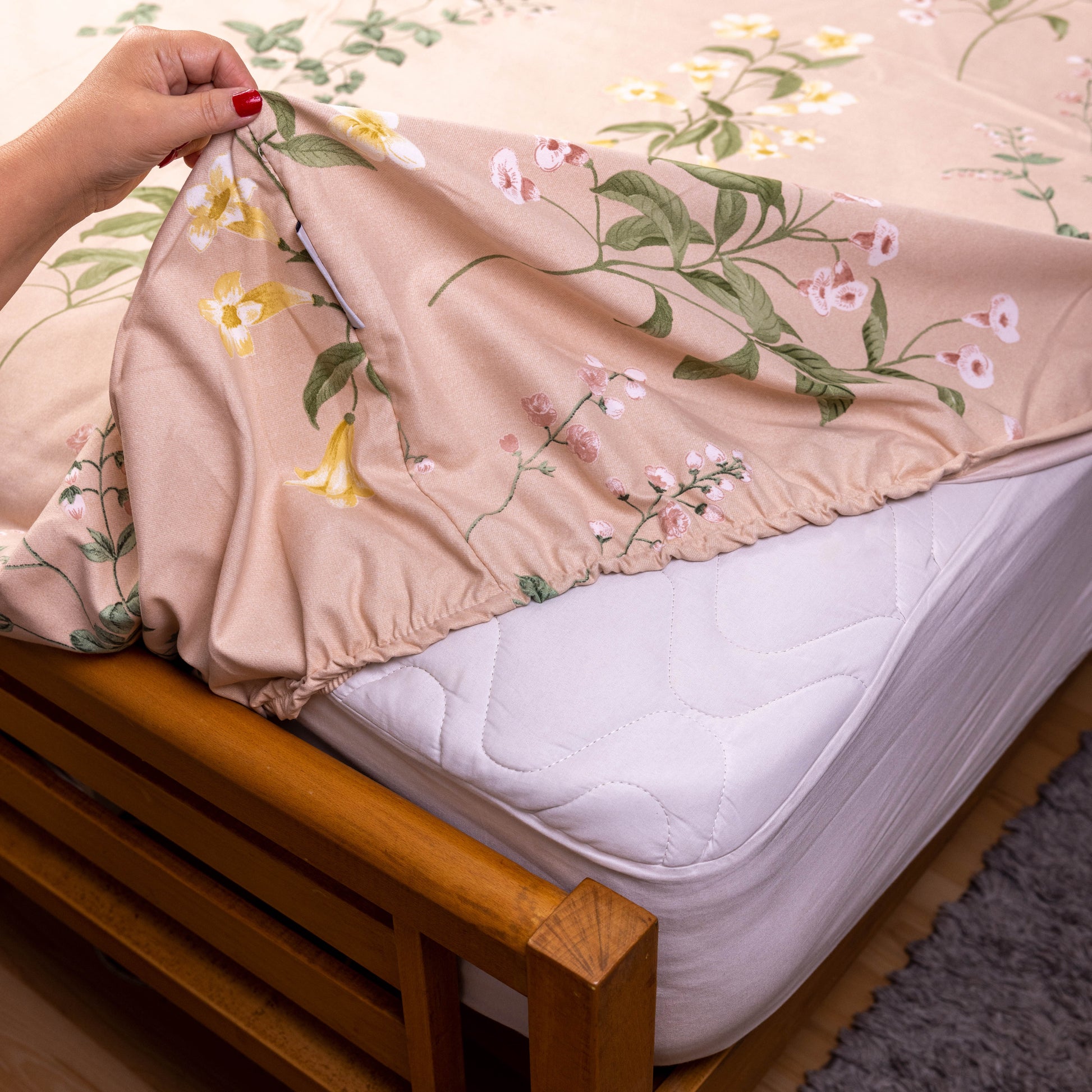 - Elasticated, 30 - 35 cm deep sides for a fitted sheet that fits snug